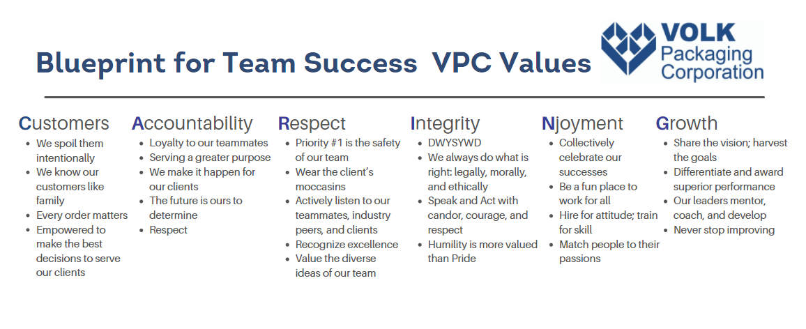 We are proud to be associated with Volk Packaging Cooperation and the Volk family. Led by God, they truly are CARING for their customers, employees and community. All the while, looking for ways to bless others.